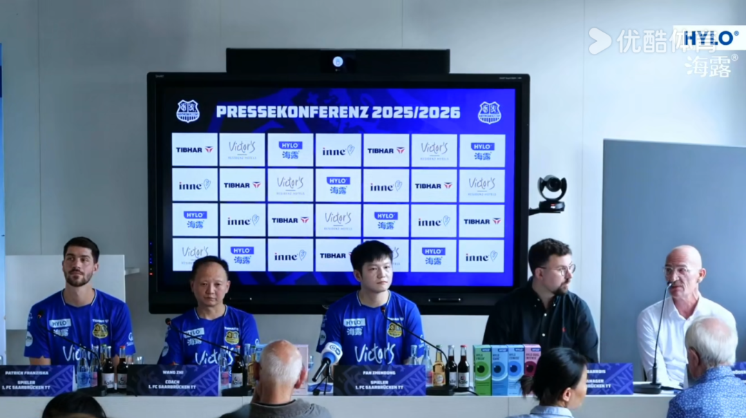 北京时间8月27日晚,德甲乒乓球俱乐部萨尔布吕肯举行新赛季发布会,包括俱乐部高层、主教练和球员共五人参加本次发布会,樊振东C位出席。